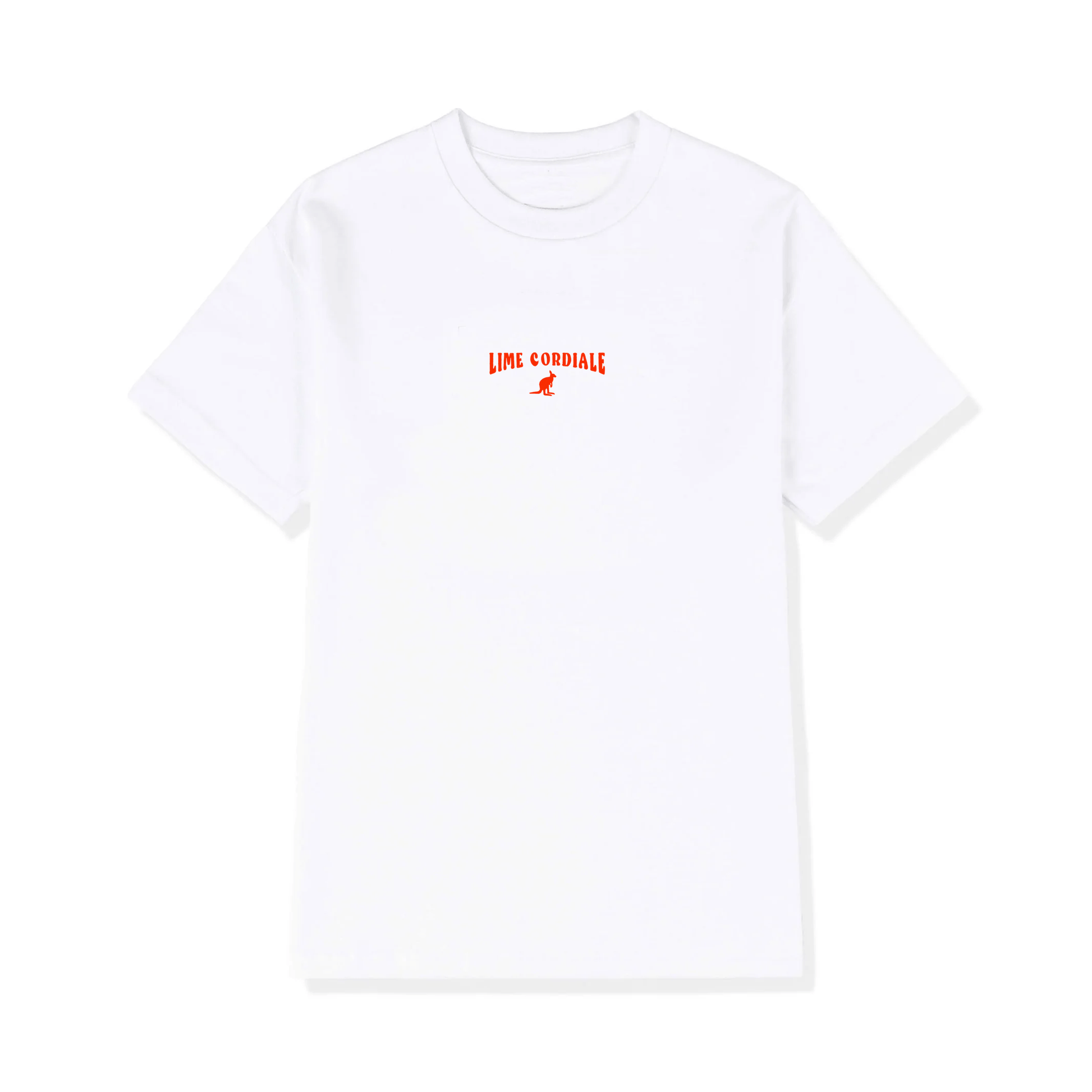 Exclusive embroidered Lime Cordiale Kangaroo design on a white tee.